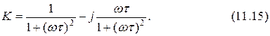 Для построения годографа коэффициента передачи от частоты формулу (14.14) удобнее представить в виде