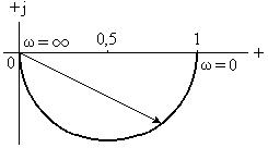 Годограф коэффициента передачи представляет собой прямую, начинающуюся в точке