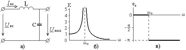 -цепи (рис. 14.8, б) на низких частотах имеет индуктивный характер, а на высоких – ёмкостный. На частоте резонанса фаза скачком изменяется на