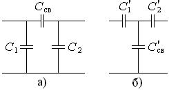 Рис. 18.1. Преобразование внешней ёмкостной связи (а) во внутреннюю (б)