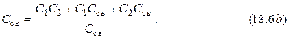 Эти формулы также можно получить, преобразуя соединение емкостей треугольником в соединение звездой (рис. 18.1) и используя формулы (6.8) и (6.14). После подстановки конкретных выражений емкостных сопротивлений схемы с внешней связью в вышеуказанные формулы и их преобразования получаем