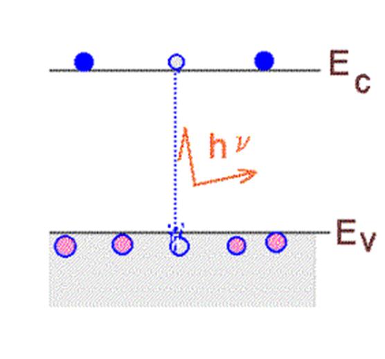 Прямая рекомбинация, т.е. из зоны в зону, маловероятна, т.к. вероятность встречи двух движущихся хаотически частиц - электрона и дырки - крайне мала.