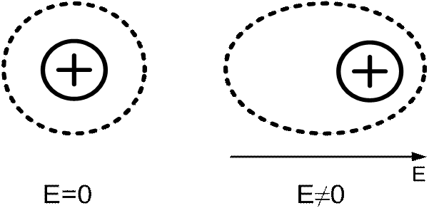 Электронная поляризация - это смещение электронных орбит относительно положительно заряженного ядра.