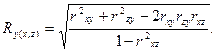 Чтобы оценить «чистое» влияние фактора на результативный показатель, при постоянных значениях прочих факторов строят частные коэффициенты корреляции. Например, при линейной связи частный коэффициент корреляции между х и у при постоянном значении другого фактора z исчисляется так: