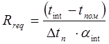 Расчет требуемого термическое сопротивление теплопередаче внутренних огражденийпри разности расчетных температур воздуха между помещениями 6 оС и выше, производится по следующей формуле
