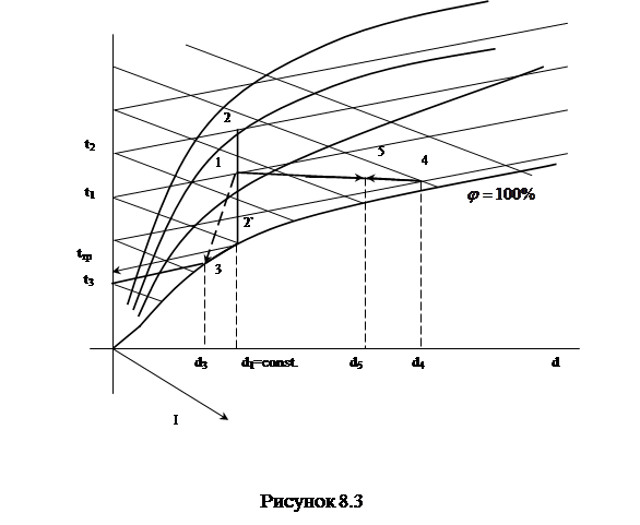 жаются на I-d диаграмме прямыми линиями. Рисунок 8.3.