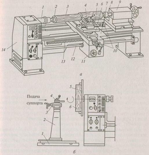 Центровые токарные станки (рис. 118, о; 119, а). Взависимости от длины лезвия токарного резца центровые станки делятся на две группы: коротколезвийные и длиннолезвийные (длина лезвия меньше или равна длине детали).