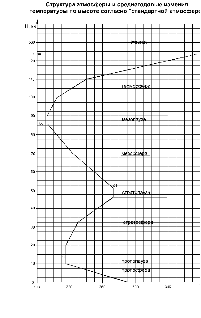 Стратопауза отделяет стратосферу от лежащей выше мезосферы. Выше мезосферы расположена термосфера (или ионосфера), между которыми имеется мезопауза. Для термосферы характерно непрерывное повышение температуры с увеличением высоты. На высоте 200 км - 500°С, а на высоте 500–600 км превышает 1500°С. В термосфере газы очень разрежены. Молекулы их движутся с большой скоростью, но редко сталкиваются между собой и поэтому не могут вызвать даже небольшого нагревания находящегося здесь тела.