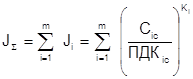 Загрязнения атмосферы несколькими веществами оценивается комплексным индексом (суммарным) (J):