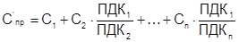 Для каждой группы этих веществ используются понятия приведенной концентрации (С'пр), т.е. концентрация всех веществ приводится к значению концентрации одного из них (С1):