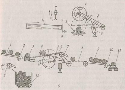а — однопильный торцовочныйстанок; б — многопильные линии