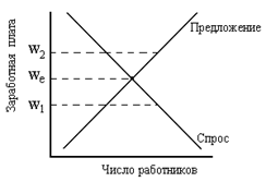 | Рис. 3 Спрос и предложение на рынке труда |