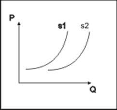 Данные факторы вызывают изменение предложения и сдвиг кривой на графике: