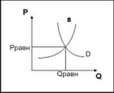 Взаимодействие спроса и предложения приводит к установлению стабильной рыночной цены, которая называется равновесной. Графически она отражается в следующем виде: