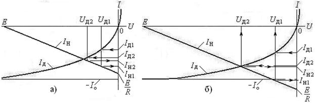 Рис. 3.2. Ход нахождения рабочей точки полупроводникового диода в статическом режиме при
