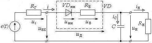 Рис. 4.1. Эквивалентная схема электрической цепи переменного тока с полупроводниковым диодом и емкостной нагрузкой