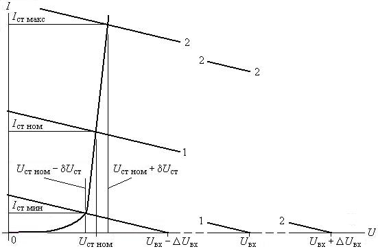 3. Вольтамперную характеристику стабилитрона на участке стабилизации аппроксимируют прямой, проходящей через точку номинальных значений тока
