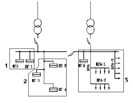 1 - радиальная схема; 2- магистральная схема; 3 - смешанная схема