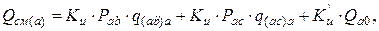 Р(аb)а, Р(аc)а, q(аb)а, q(аc)a - коэффициенты приведения нагрузок, включенных на линейные напряжения ав и ас к фазе “а” (таблица Л.1 приложение Л);
