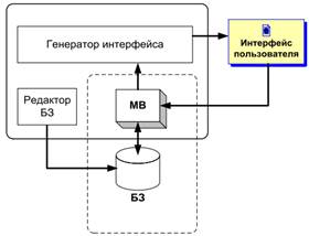 4. И – интерфейс пользователя – блок, предназначенный для взаимодействия ЭС с пользователем, через который система запрашивает необходимые для ее работы данные, и выводит результат. Система может иметь «жесткий» интерфейс, ориентированный на определенный способ ввода и вывода информации, или может включать средства проектирования специализированных интерфейсов (генератор интерфейса) для более эффективного взаимодействия с пользователем.