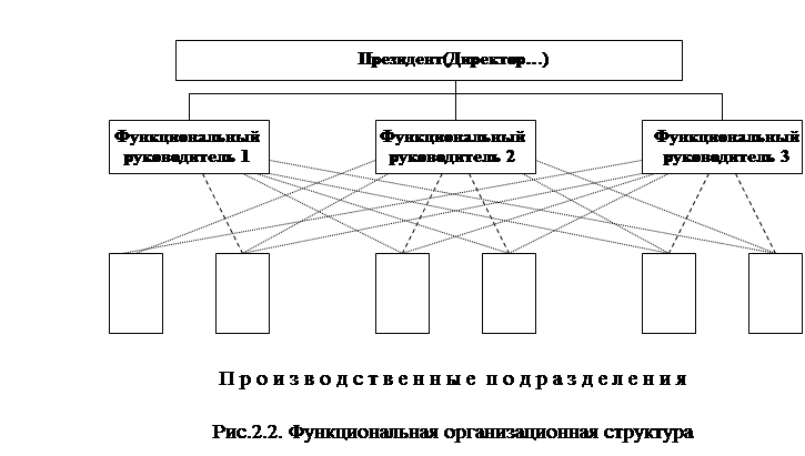 Функциональная организационная структура построена по принципу распределения функций внутри организации и создания сквозных подструктур по управлению функциями (рис. 2.2).