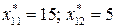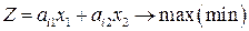 4) решая совместно уравнения прямых, пересекающихся в точке оптимума, найти ее координаты, а затем