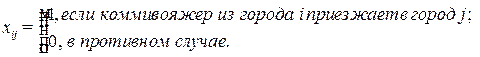 Примером целочисленной оптимизационной модели является задача коммивояжера. Эта задача формируется следующим образом.