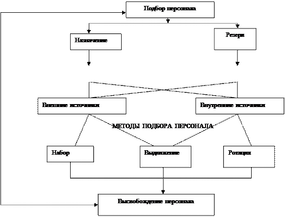 Система подбора персонала представлена на рисунке 3. В понятие подбора кадров прежде всего входит установление числа назначений, т.е. определение реального размера программы подбора, что зависит от назначения кадров на определенную должность и резерва кадров.