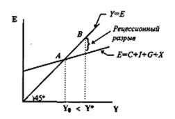 Рецессионный разрыв - величина, на которую должен возрасти совокупный спрос (совокупные расходы), чтобы повысить равновесный ВНП до неинфляционного уровня полной занятости.