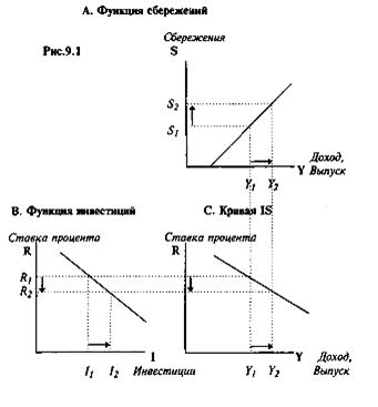 Простейший графический вывод кривой IS связан с использованием функций сбережений и инвестиций (см. рис.6.1.1.).