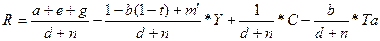Уравнение кривой IS может быть получено путем подстановки уравнений 2, 3 и 4 в основное макроэкономическое тождество и его решения относительно R и Y.