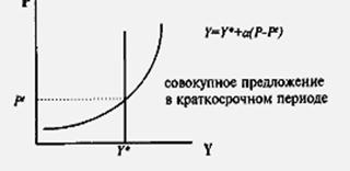 Теорию совокупного предложения называют иногда теорией ошибок, поскольку отклонения фактического уровня цен от ожидаемого объясняются обычно ошибочными представлениями рабочих и владельцев фирм. Так, рабочие часто воспринимают повышение своей номинальной заработной платы, связанное с ростом цен, как увеличение реальной зарплаты и, соответственно, увеличивают предложение труда. Владельцы фирм лучше осведомлены о фактическом соотношении роста цен и номинальной заработной платы. Зная, что последняя растет медленнее, чем цены, а значит, реальная заработная плата падает, они увеличивают спрос на труд. В итоге, одновременно с ростом уровня цен, растет занятость и объем выпуска. В приведенном выше уравнении кривой AS фактический объем выпуска (Y) может превысить потенциальный (Y*), если фактический уровень цен (Р) оказался больше, чем предполагали рабочие (Р6), что и привело к фактическому снижению реальной заработной платы. Это продолжается до того момента, пока рабочие начинают осознавать ошибочность своих предположений о реальной заработной плате и требуют такого повышения номинальной заработной платы, которое компенсировало бы рост цен и сохраняло прежнюю реальную заработную плату.