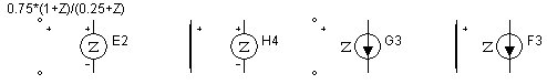 Примеры использования лапласовых зависимых источников см. в схемных файлах: LAPLACE SOURCE_01, LAPLACE SOURCE_05 из каталога COMPONENTS\SOURCES_ИСТОЧНИКИ.