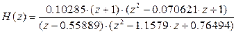 .DEFINE ZFILTER.10285*(Z+1)*(Z* Z-.070621*Z+1)/((Z-.55889)*(Z* Z-1.1579*Z+.76494))