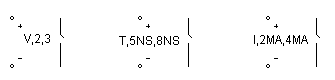 Приведем примеры спецификации ключей: V,2,3 l,2ma,3ma,0.01,1MEG Т, 5us, 6us.