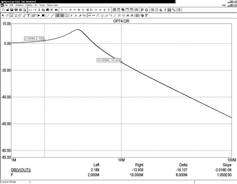 MICROCAP имеет группу специальных функций PERFORMANCE, которые используются для указания и измерения некоторых характеристик построенных графиков. Эти функции могут вызываться с помощью панели инструментов графического окна после построения графиков соответствующего анализа нажатием кнопки