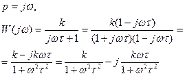 Получим частотную характеристику из передаточной функции, для чего подставим в нее