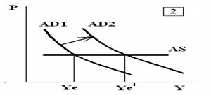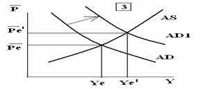 Макроэкономическое равновесие достигается редко из-за постоянных колебаний AD и AS. Последствия изменения совокупного спроса зависят от того, на каком отрезке совокупного предложения AS это происходит. На рис. 2.3 – 2.5 показаны изменения параметров равновесия при увеличении совокупного спроса.
