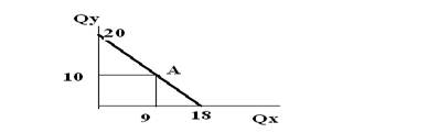 Бюджетная линия или линия бюджетного ограничения отражает множество вариантов набора двух благ, которые может приобрести потребитель на свой доход (рис.4.5). В точке А потребитель может купить 9 единиц блага Х и 10 единиц блага У. Если весь доход он потратит на покупку блага Х, то купит его 18 единиц, а если все деньги пойдут на благо У, то его можно купить 20 штук.