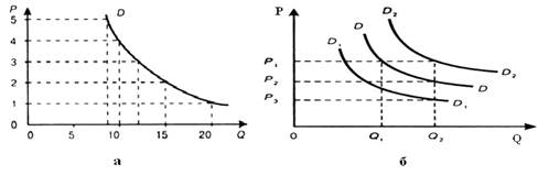 Рисунок 4.7 а - кривая спроса, б - изменения кривой спроса