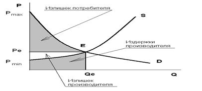 Рисунок 4.10 Излишек потребителя, издержки и излишек производителя