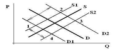 Рисунок 4.12 Одновременное изменение спроса и предложения