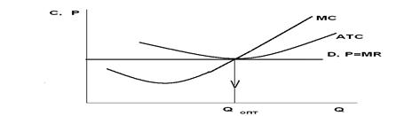 Рисунок 7.1 Равновесия конкурентной фирмы в долгосрочном периоде