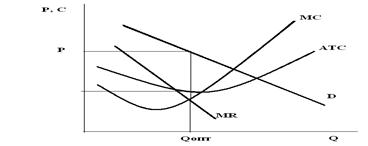 Спрос в условиях монополистической конкуренции является эластичным по цене. Хозяйствуют десятки фирм, сговор невозможен. Поведение фирмы – монополистического конкурента аналогично поведению монополиста. Кривая спроса – убывающая, а кривая предельного дохода расположена ниже кривой спроса (рис. 7.4).