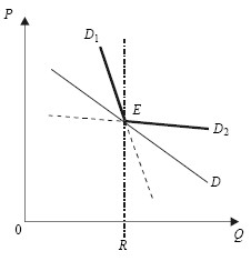 2. График ломаной кривой спроса на продукцию олигополиста. График ломаной кривой спроса характеризует поведение олигополистов при отсутствии между ними сговора, когда каждый выступает за себя.