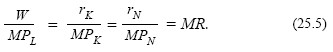 позволяет ответить на вопрос: каков должен быть спрос фирмы на фактор «труд», чтобы максимизировать получаемую ею прибыль? То же самое относится и к другим факторам – капиталу (К) и земле (N):