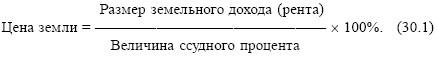 Покупатель приобретает землю не ради почвы, а того дохода, который она принесет. При этом он стоит перед выбором: либо купить землю и получить с нее доход, либо вложить деньги в банк под ссудный процент и также получить доход. Выбирается всегда лучший вариант. Именно по этой причине цена земли и связана с расчетом ссудного процента.