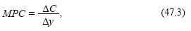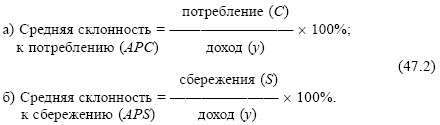 3. Предельная склонность к потреблению и сбережению. За средней склонностью населения к потреблению и сбережению стоят колебания как дохода, так и настроений людей, поэтому важно знать, как человек реагирует на изменение его дохода – в сторону увеличения потребления или сбережения? Для этой цели применяются, соответственно, показатели предельной склонности к потреблению и сбережению (рис. 47.1).