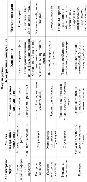 | Таблица 2.2 Характерные черты четырех основных типов (моделей) рынка | |