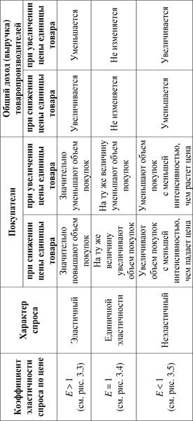 Зависимость поведения покупателей и величины общего объемадохода (выручки) товаропроизводителей от характера и величины эластичности спроса на товары по цене представлена в табл. 3.1.